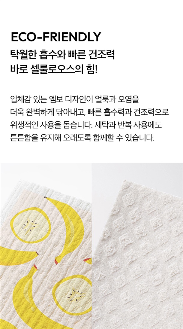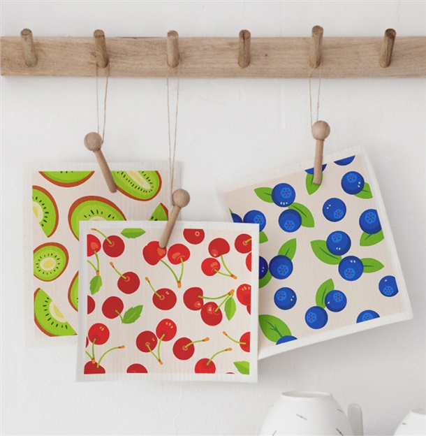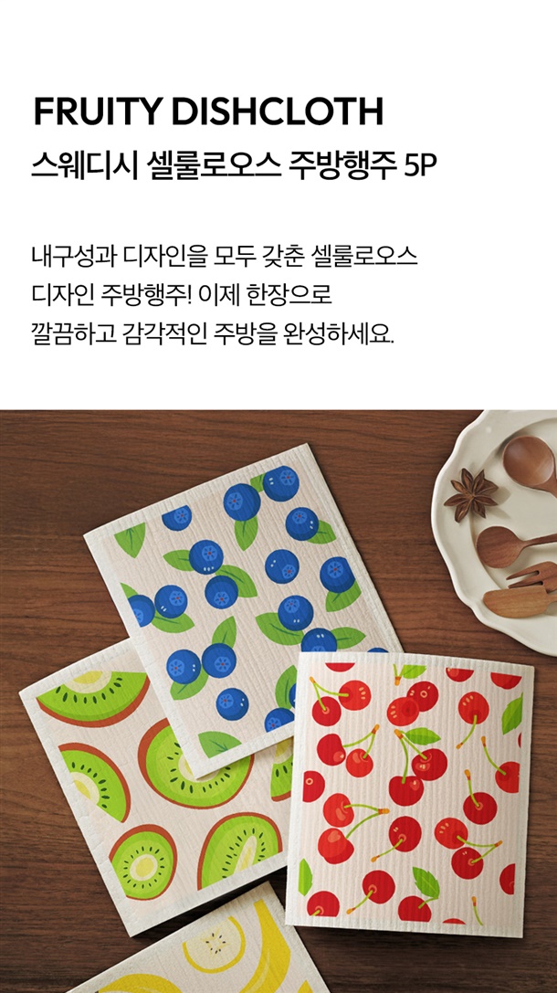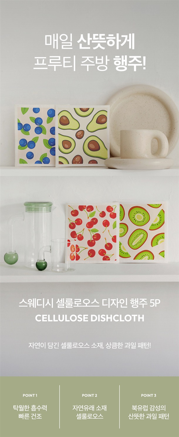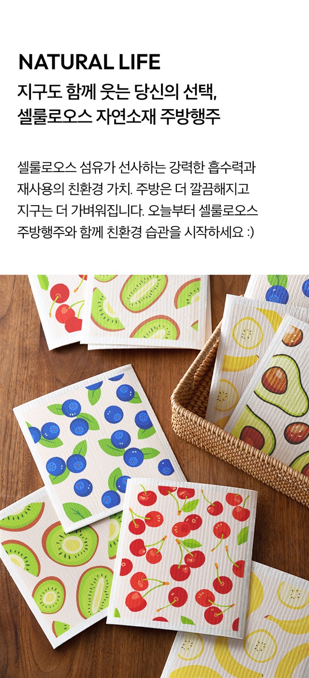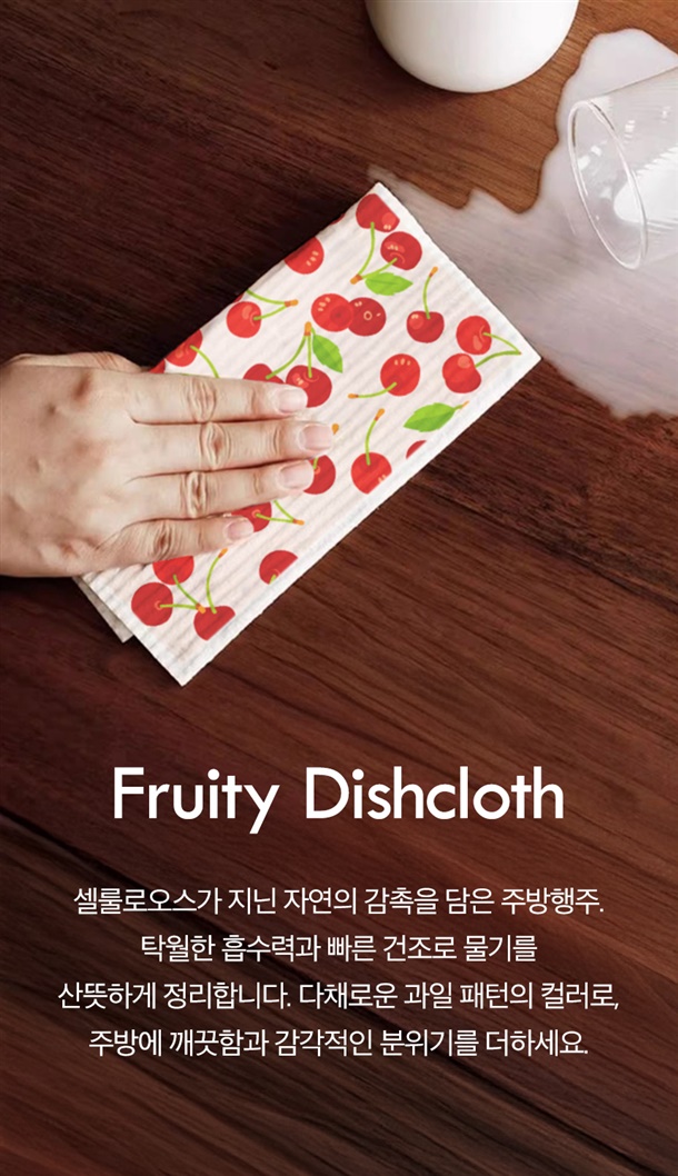 셀룰로오스가 지닌 자연의 감촉을 담은 산뜻한 과일패턴 주방행주✨