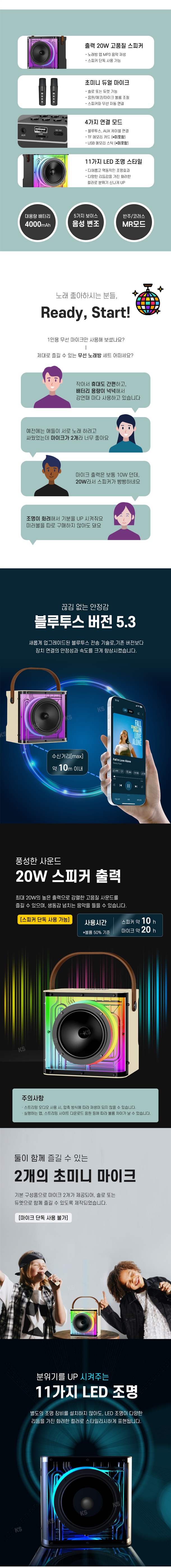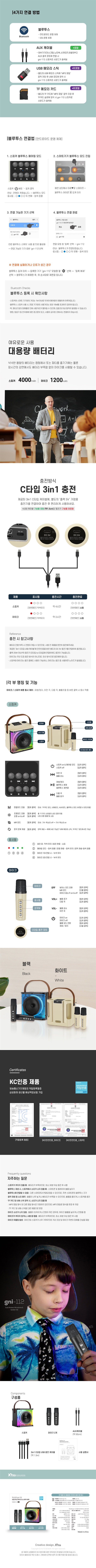 구성 : 스피커, 마이크x2 , AUX케이블(50CM) , 3in1 C타입 충전케이블 , 설명서