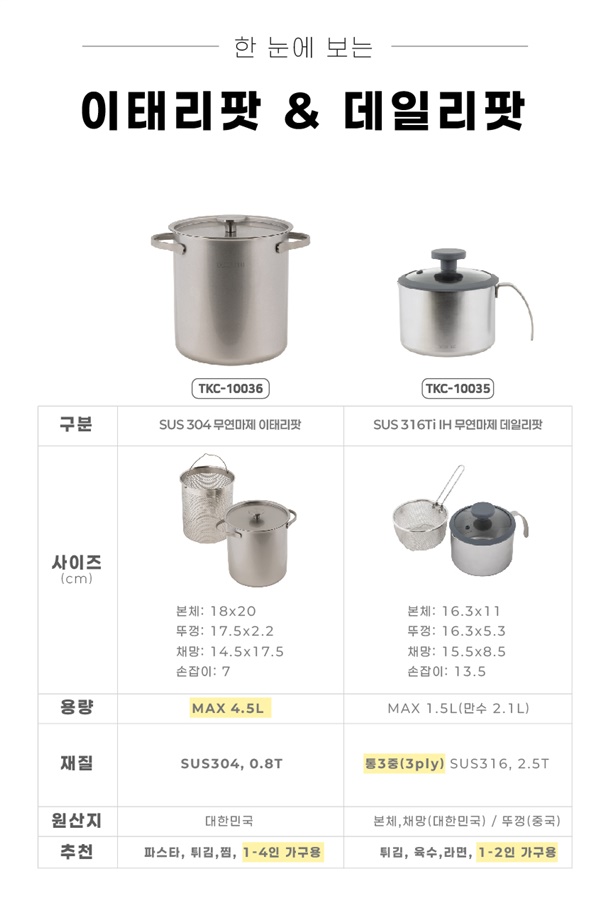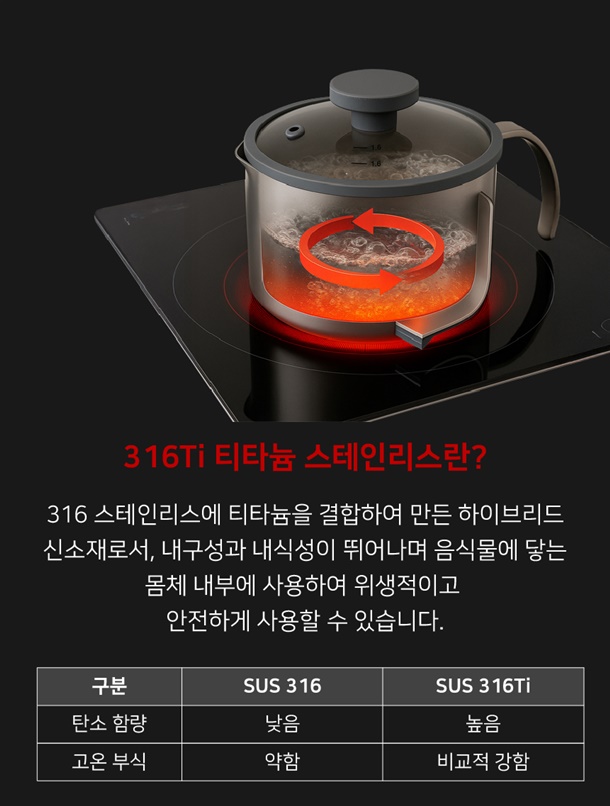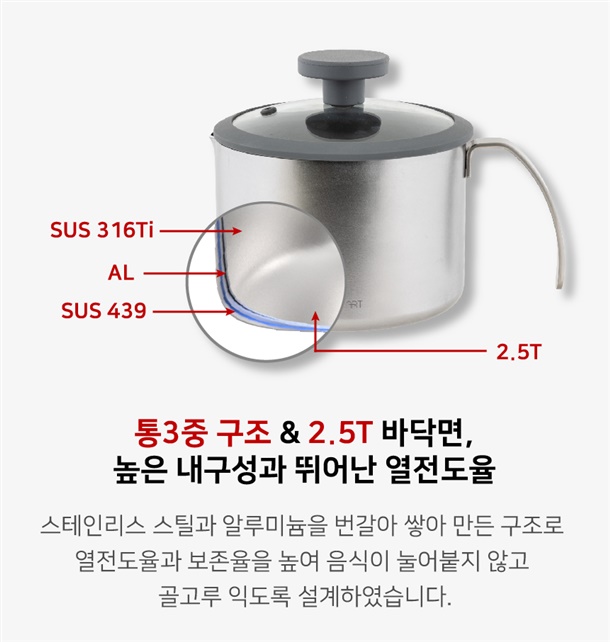 SUS 316Ti / 무연마제 / 통 3중 / 대용량 /스팟 용접 방식 / 모든 열원 사용 가능